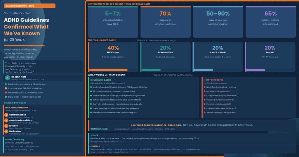 South African psychiatrists release new ADHD guidelines confirming what developmental paediatrician Dr John Flett has advocated for 25 years about diagnosis and treatment.